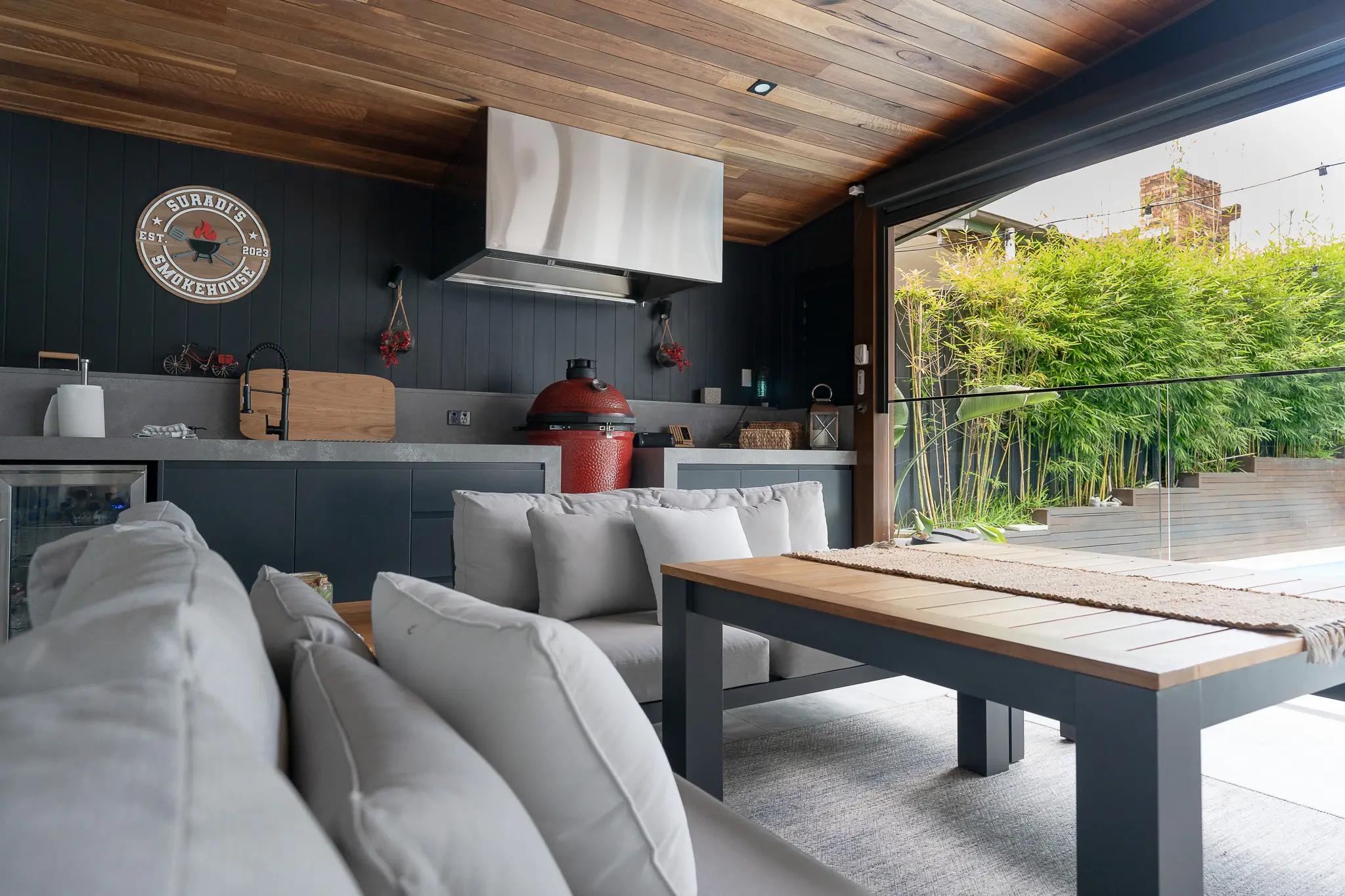 An entertainer's dream, with a fully equipped outdoor kitchen built for long weekend gatherings